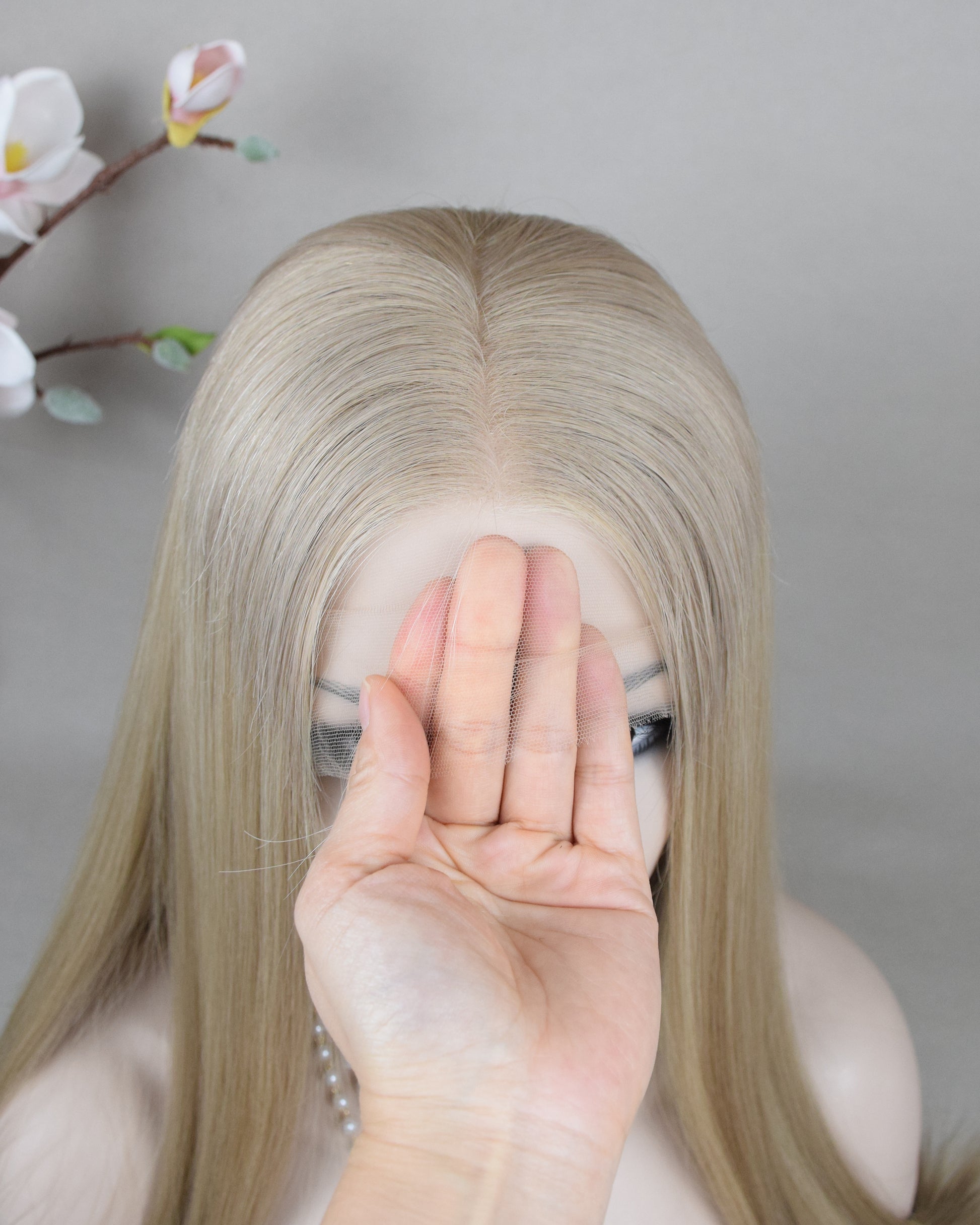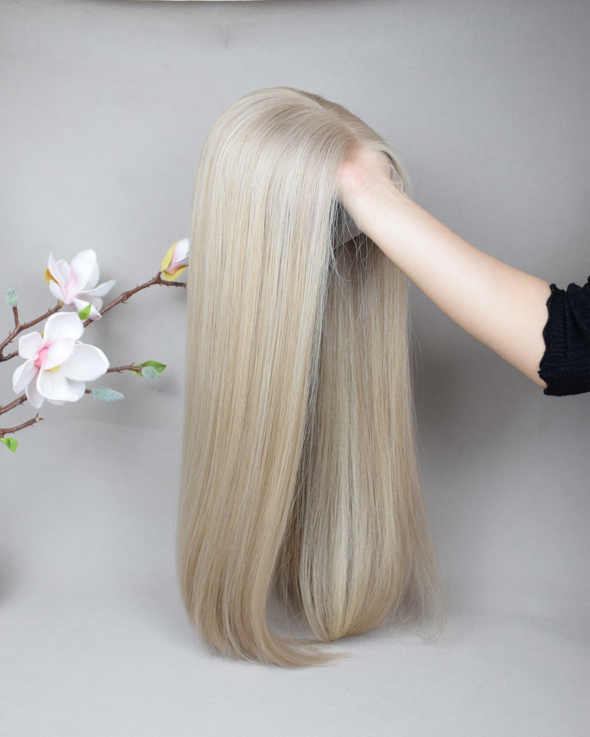 Auspiciouswig Ash Blonde European Virgin Hair Kosher Wig Swiss Lace Front Top Jewish Wigs