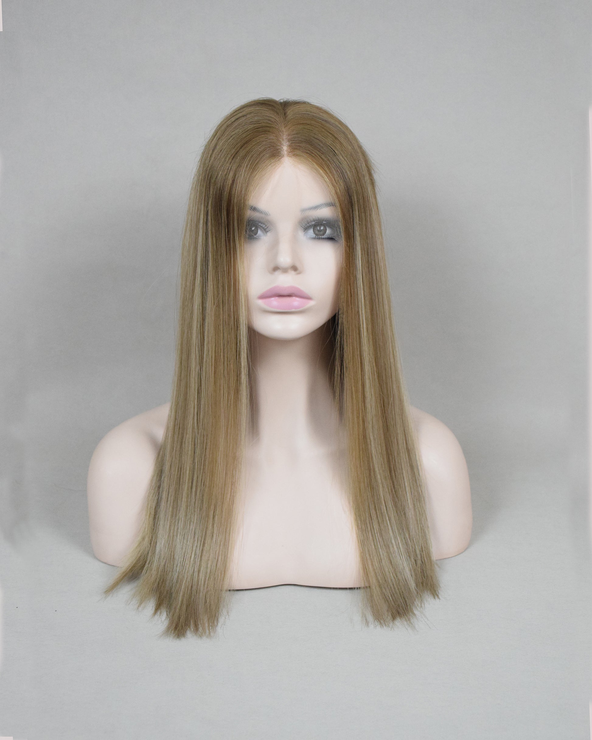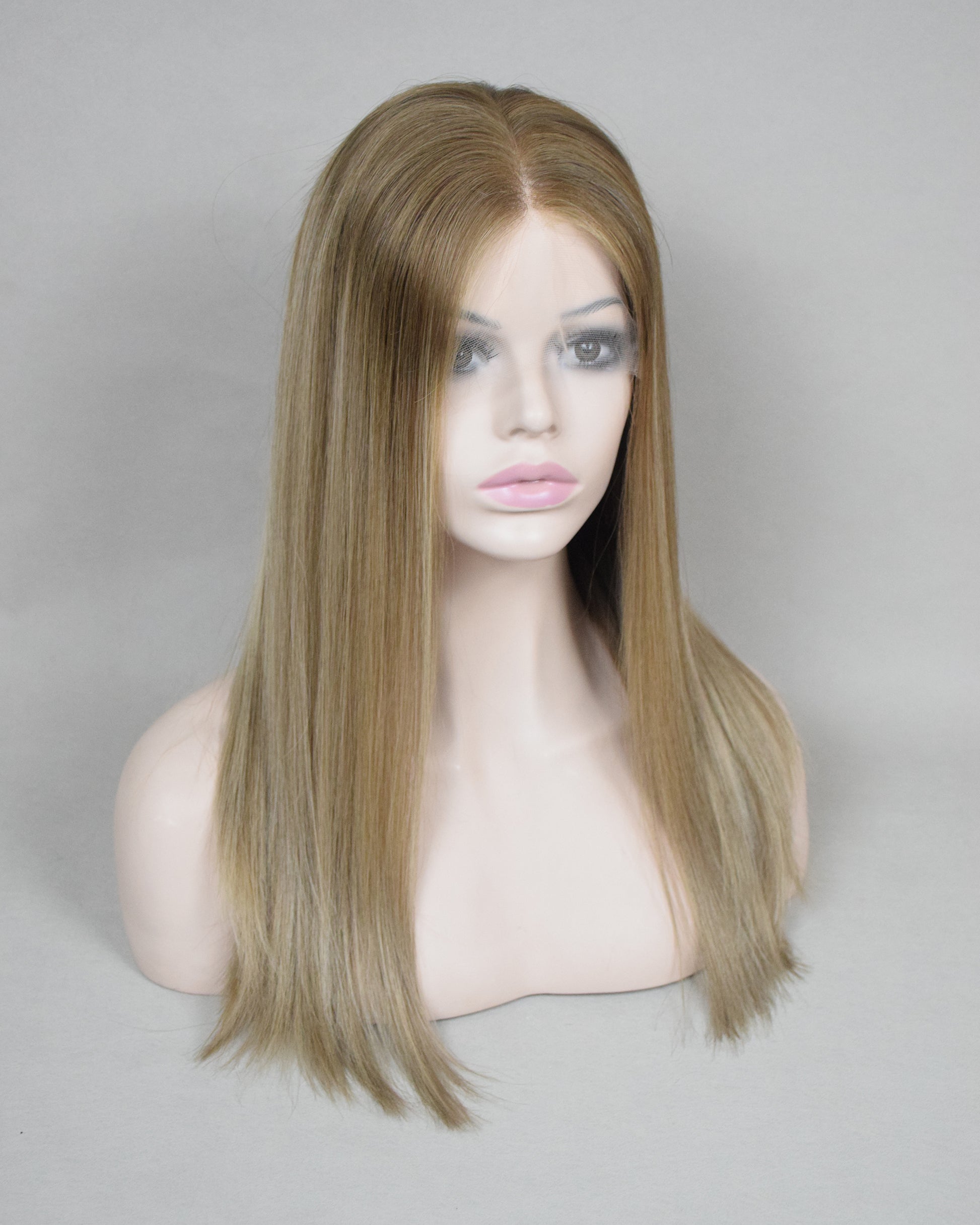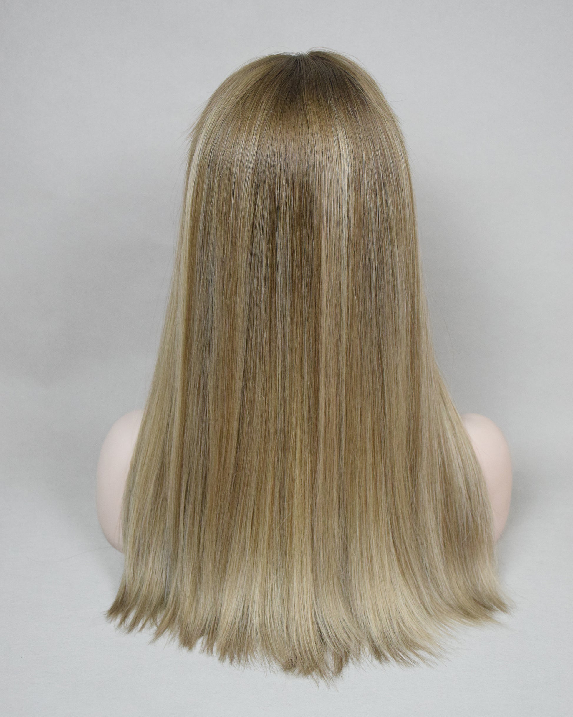 Auspiciouswig 20" Human Virgin Hair Balayage Jewish Wig Sheitel Swiss Lace Top Kosher Wig
