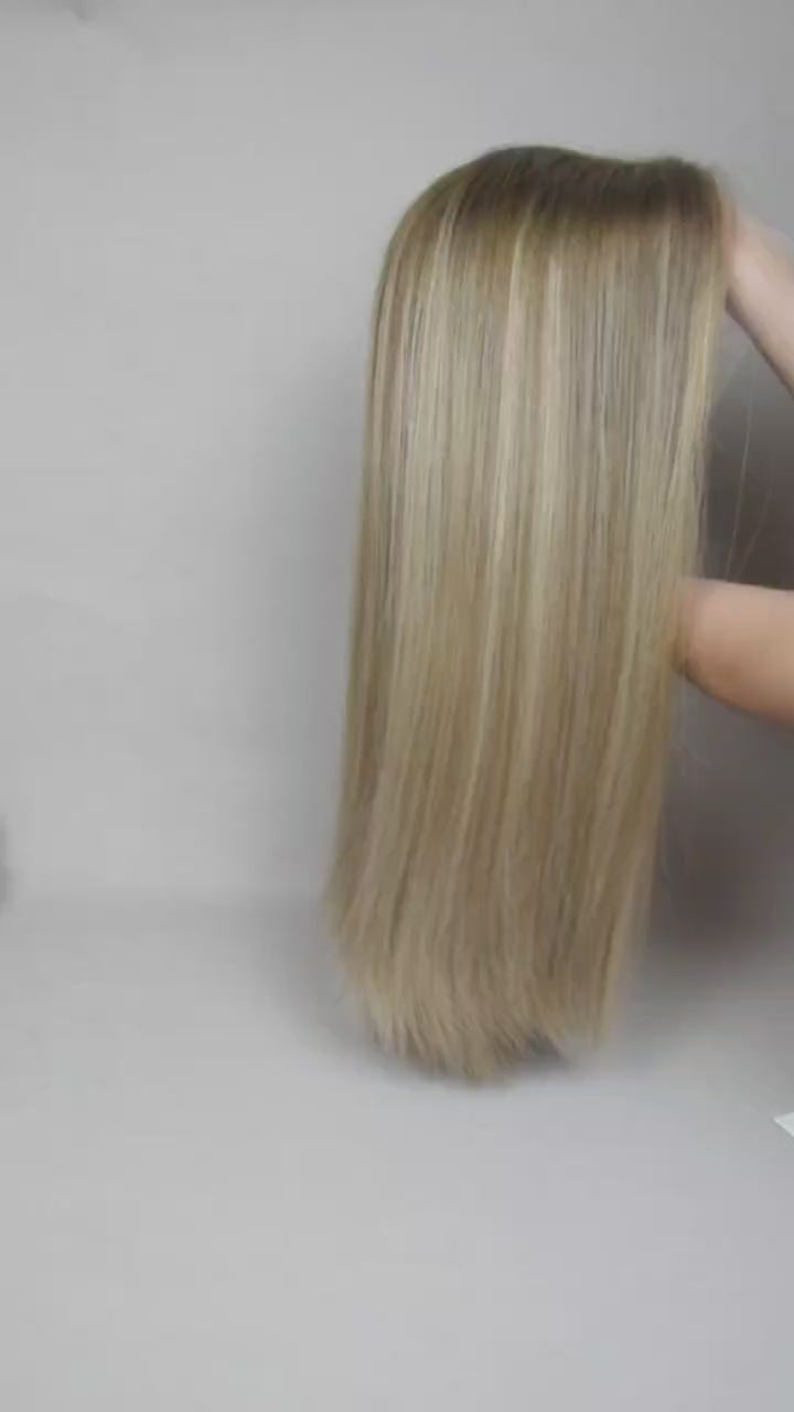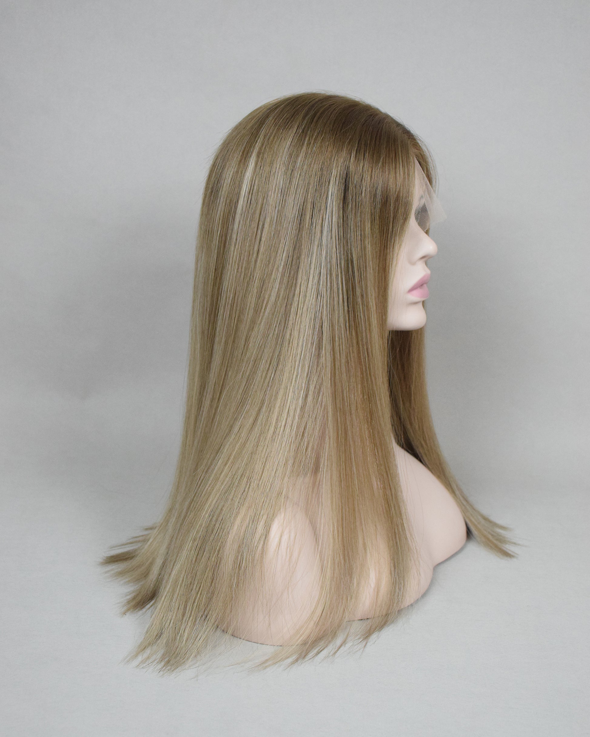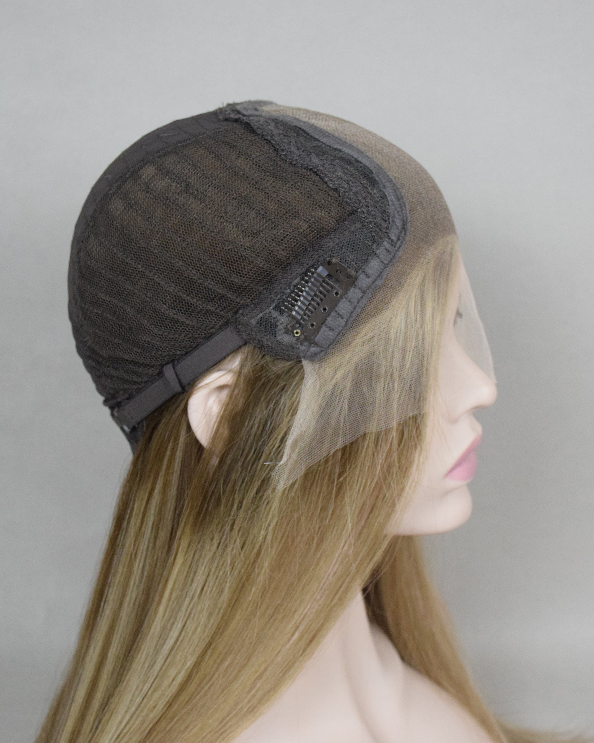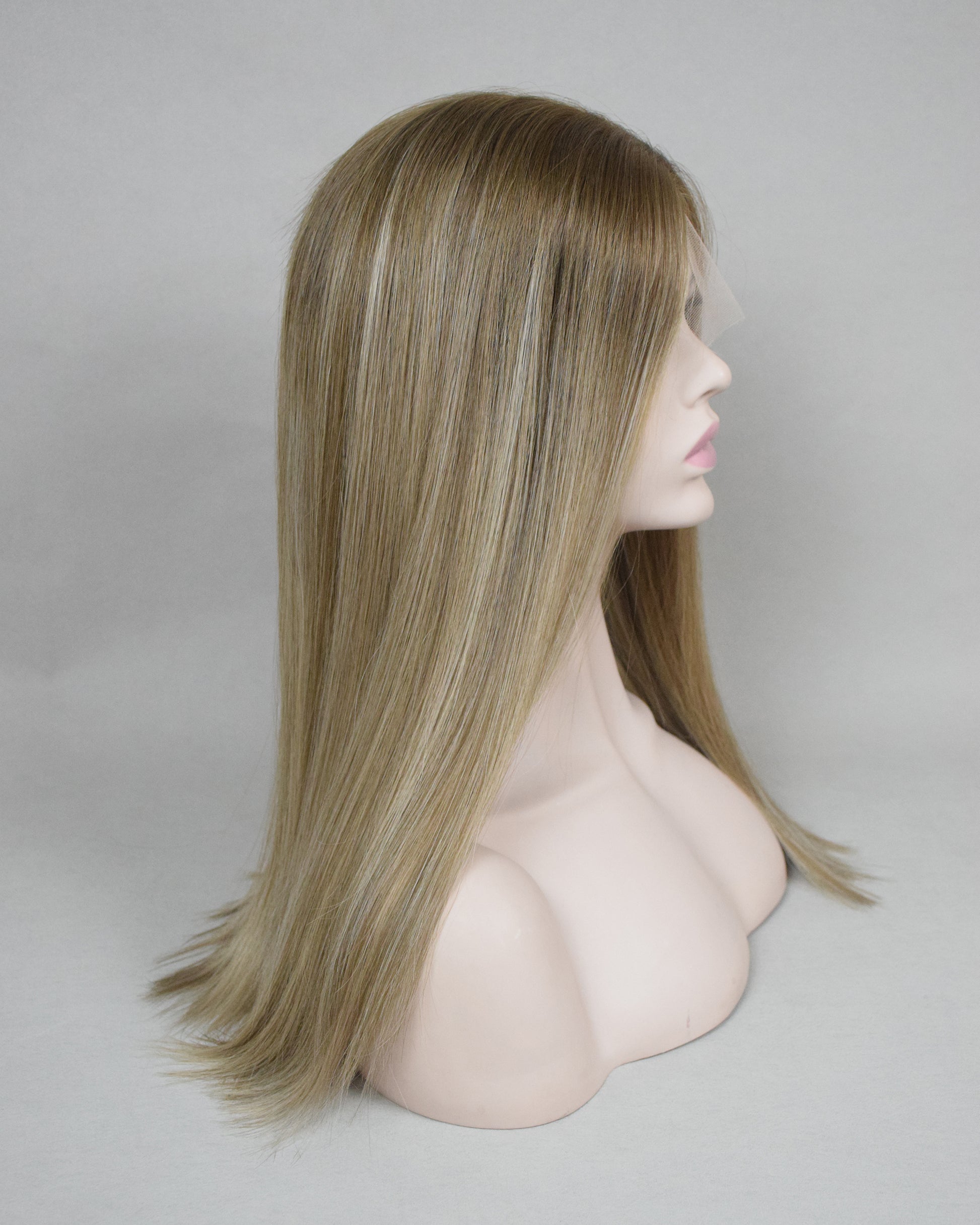 Auspiciouswig 20" Human Virgin Hair Balayage Jewish Wig Sheitel Swiss Lace Top Kosher Wig