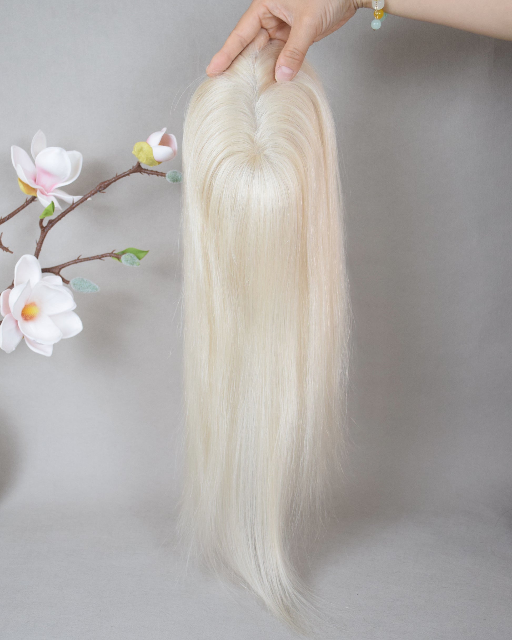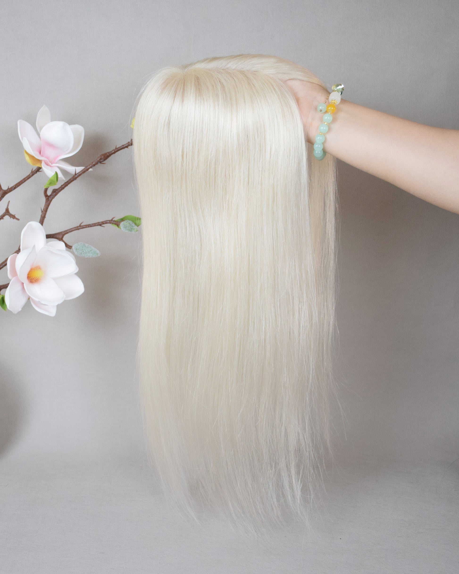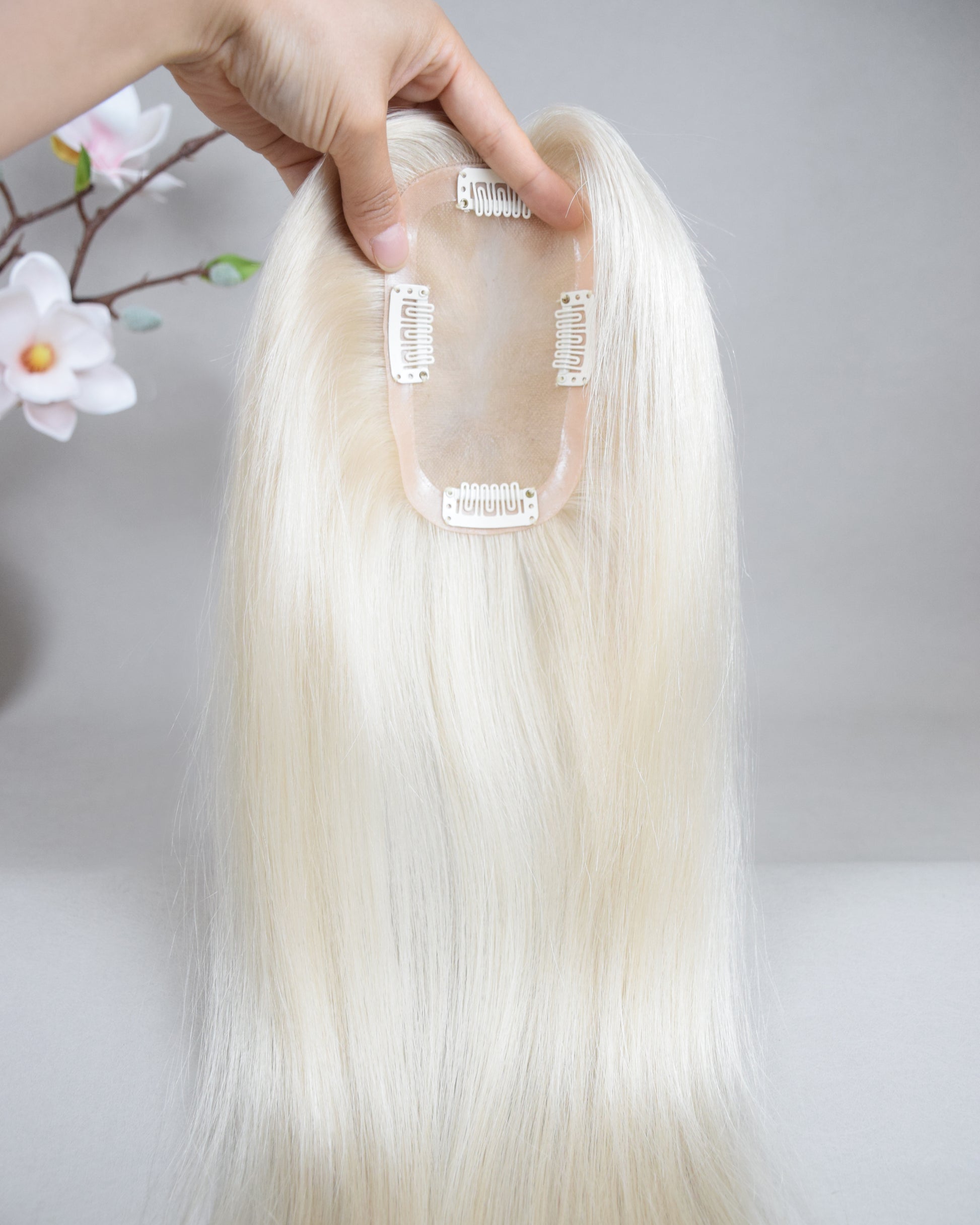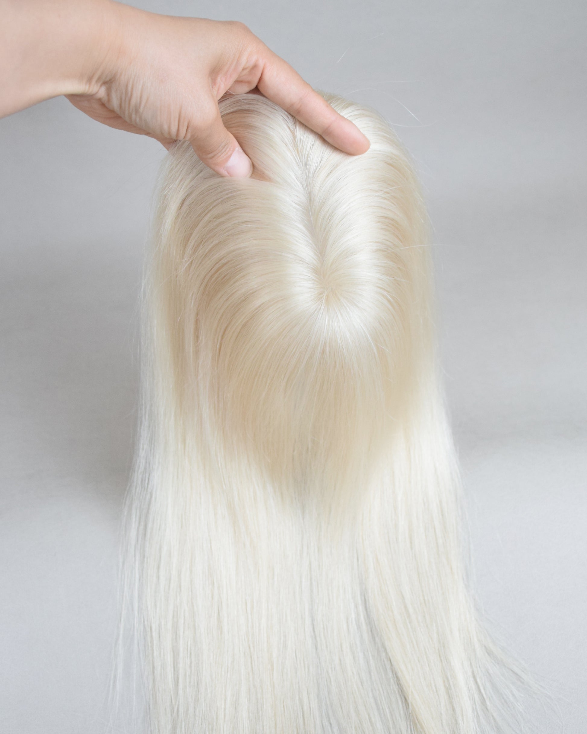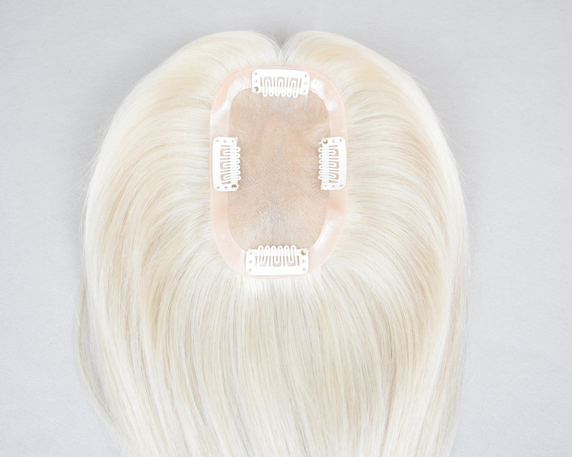 3x5" Mono Base Platinum Blonde #60 European Virgin Hair Topper For Women Hair Volume.
