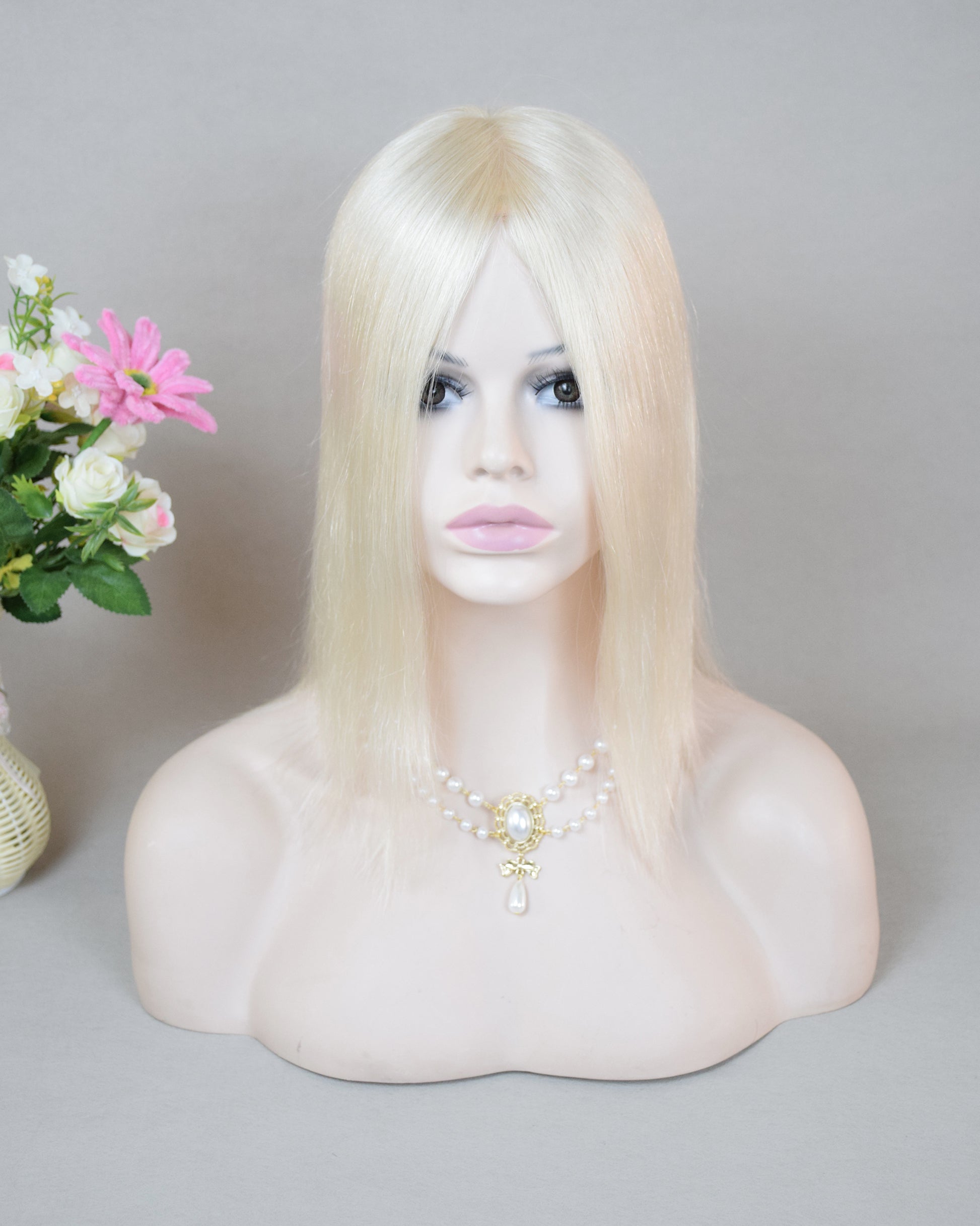 Auspiciouswig White Blonde Human Virgin Hair Topper 5x6" Mono Base Silver Blonde Human Hair Topper Hairpiece For Women Hair Volume