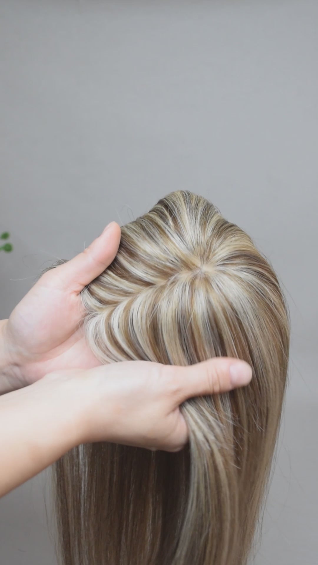 This is a special human hair system for thinning hair. This hair piece features a breathable base, it combines with your bio hair, creates a natural look. Material is european human virgin hair, silky, soft hair texture.